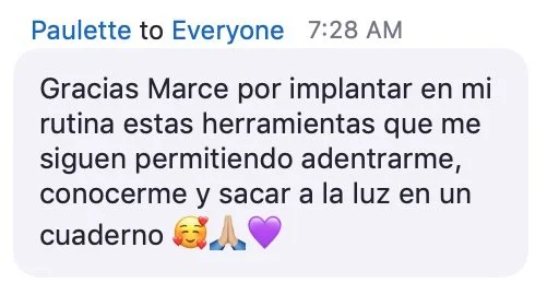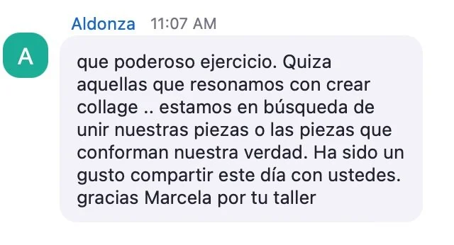 "Creía que no era creativa para nada. Con Marce, entendí que SÍ lo soy. Las instrucciones fueron tan potentes como amorosas — un abrazo que necesitaba."