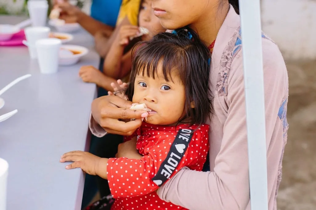 Hoy estamos aquí con ella en domingo para ayudarle a servir el desayuno: avena y albóndigas de maná, una mezcla de arroz y soya que ella consigue en Estados Unidos, donde trabaja su hijo y desde donde le envía lo que puede para ella, sus nietos y su ayuda para los demás.
