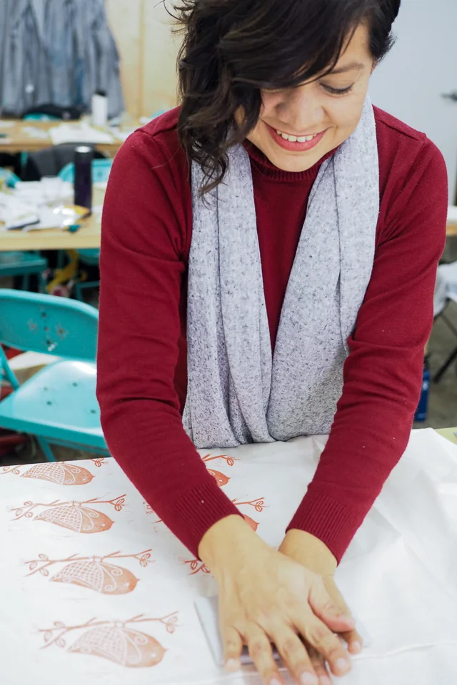Tengo algunos meses aprendiendo y practicando la técnica del block printing para imprimir sobre tela y este taller fue para mí como una inyección de inspiración para continuar con este trabajo que me está apasionando tanto. Conocer a otras personas que hacen lo que te gusta te mantiene motivada y te alimenta el alma. Es cierto que no tenía que viajar tan lejos para aprender pero es que, a final de cuentas, como sucede en todos los viajes, el aprendizaje va mucho más allá de una clase o una conversación con una persona que admiras.
